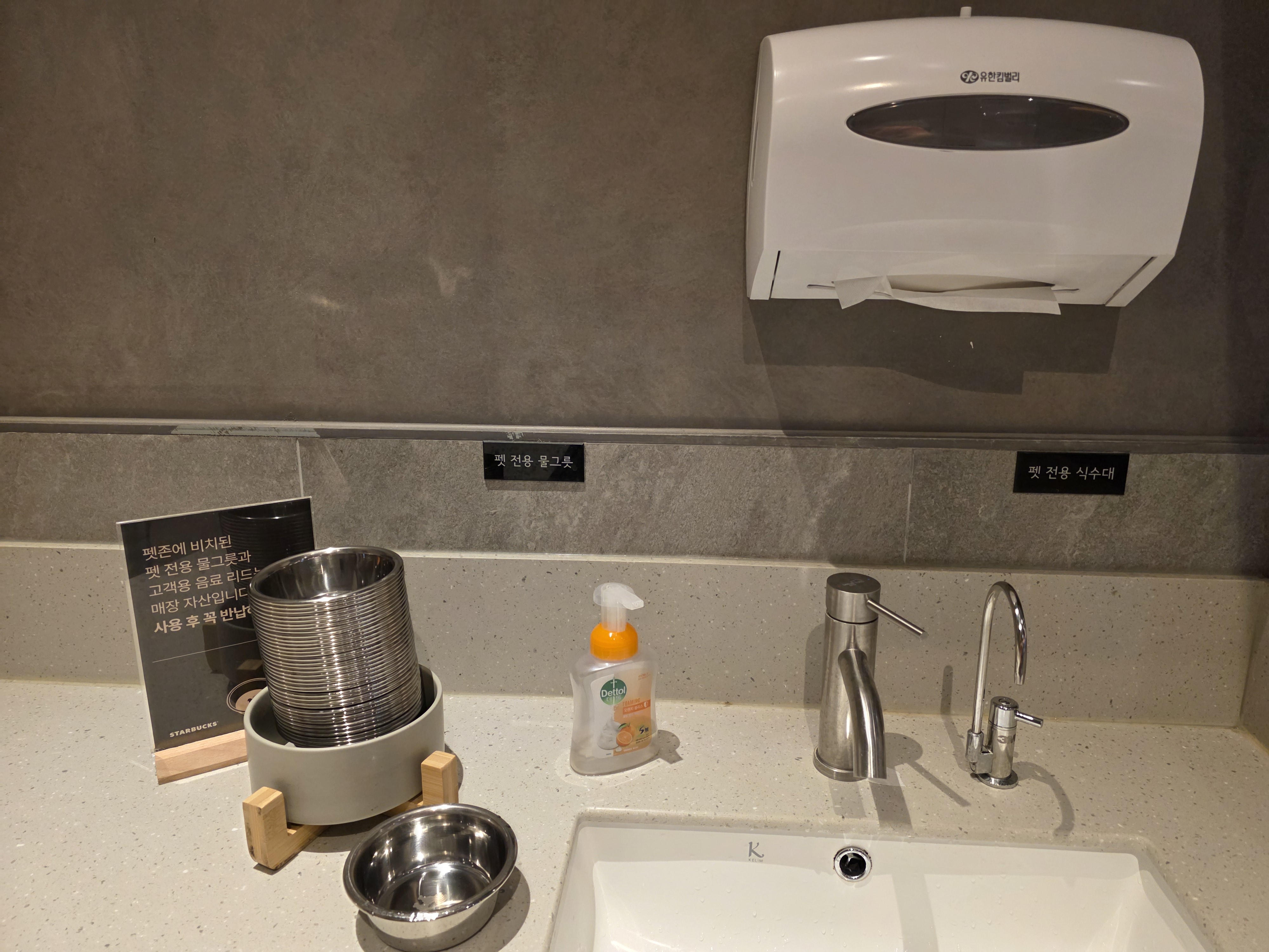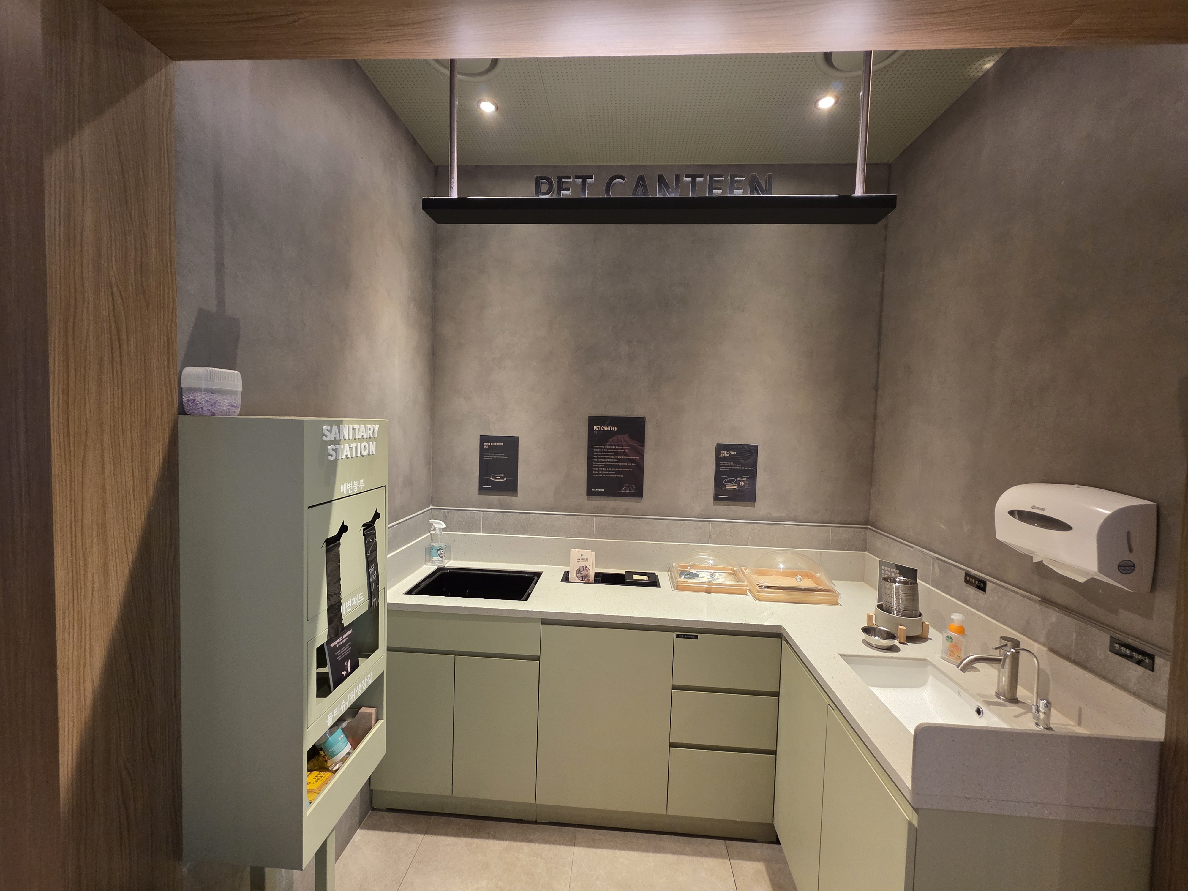 반려견을 위한 Pet Canteen과 음수대, 물그릇도 있네요.