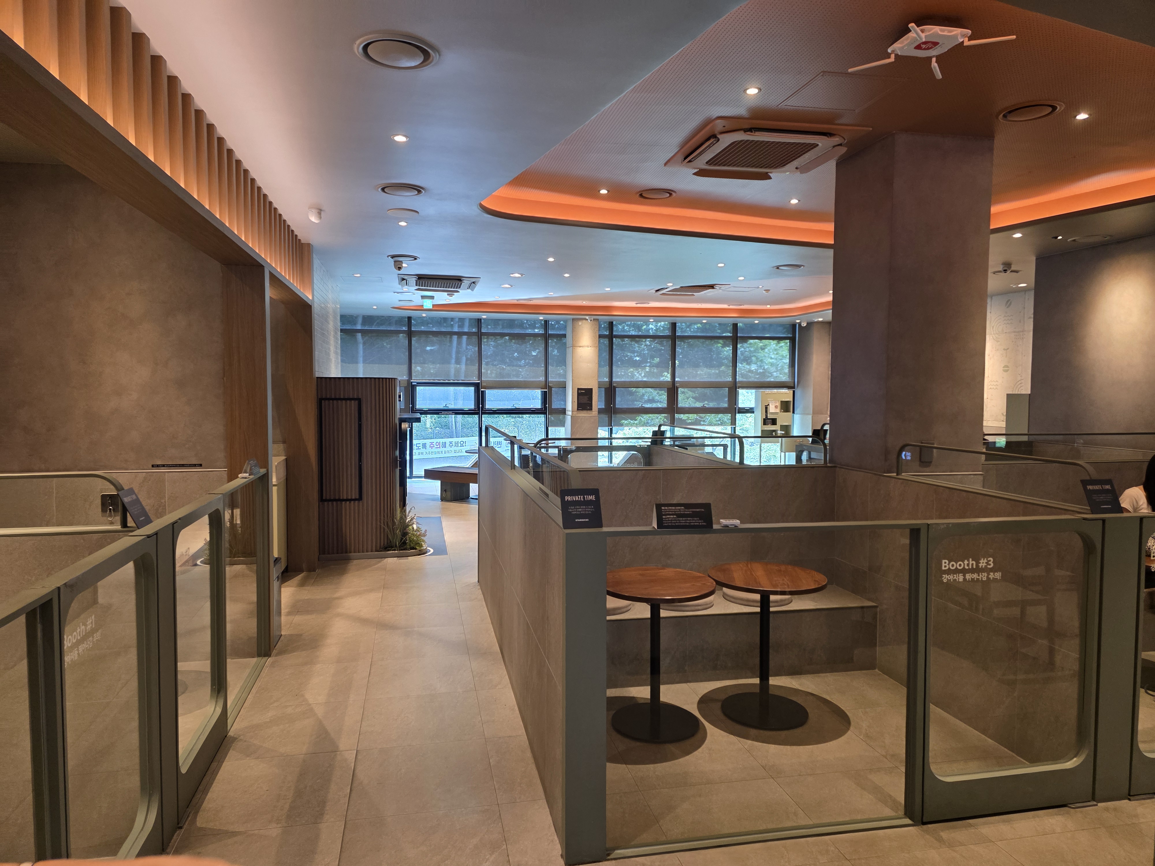 반려견을 웨이팅부스에 놓아두고서, 1층에 가서 음료를 주문하고 받아오면 됩니다.