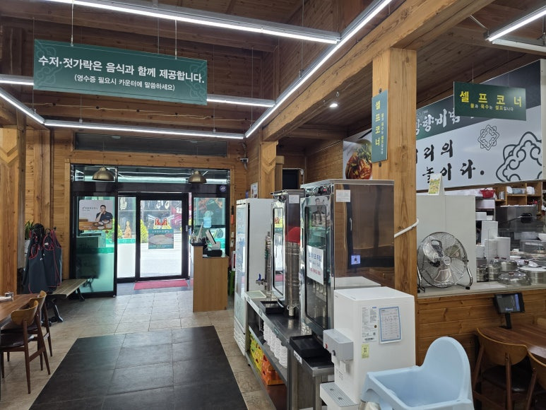 예전에는 아차산점을 자주 갔지만, 요즘은 주차가 넉넉한 구리점을 더 편하게 찾는다. 식당 입구에 들어서자마자 깔끔하게 정리된 메뉴판이 눈에 띄었고, 내부는 넓직한 원목 인테리어 덕분에 시원한 분위기가 느껴졌다.