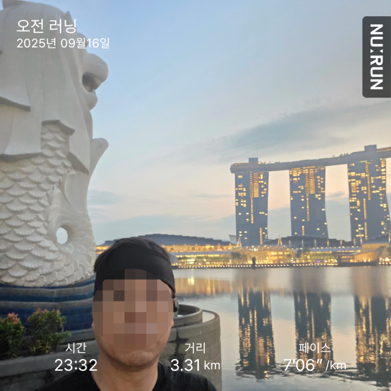 둘째 날은 이른 아침 마리나베이에서의 러닝으로 시작되었다. 평소와 다른 공간에서 달린다는 사실이 특별했고, 새벽의 마리나베이는 고요하면서도 활기가 느껴졌다. 에스플러네이드에서 출발해 머라이언 파크, 플러턴원 호텔, 마리나베이샌즈, 헬릭스 다리를 거쳐 돌아오는 약 3.3km 코스를 달렸다.